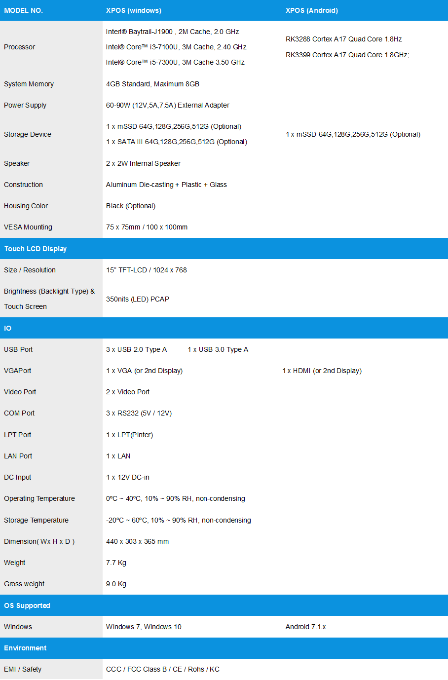 Model No : XPOS